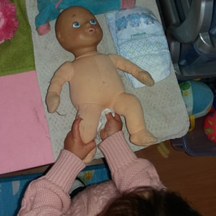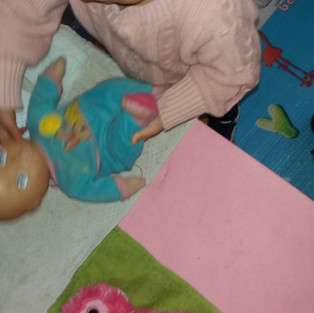 Ovviamente i nostri bimbi poi si sono voluti prendere cura delle loro bambole preferite. In ogni gesto ho visto tutto ciò che io ripeto quotidianamente con loro, fatto con una cura e attenzione che non ti aspetteresti da bambini così piccoli, tanto che alla fine sono stati felicissimi di poter portare i loro bimbi in fascia proprio come Flo.